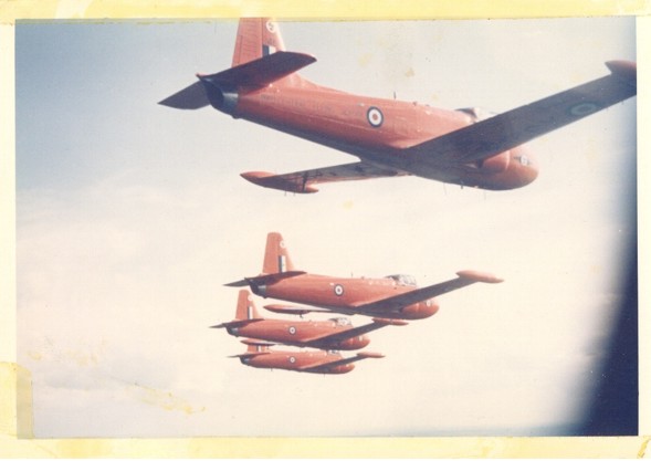 These were taken when I was posted to RAF Little Rissington. my first posting after joining the RAF in 1966. It was an excellent posting because I got onto the ground crew team of the Red Pelicans. We would fly with the aircraft, Jet Provost Mk 4's, and sometimes even do the shows with them. When we were returning from a show we would sometimes do a low fly past over where we were living just outside Northleach, just to let Chris know I was on my way home. Strangely enough the other day we were passing Swansea airport where we did a display in '67 and I remember one of the team touched the ground on landing with his tip tank and made a hole in it. We got a lift down to the nearest motor factors and bought a glass fibre kit and patched the hole so that we could all get home. I don't think we could get away with that sort of thing today. |
